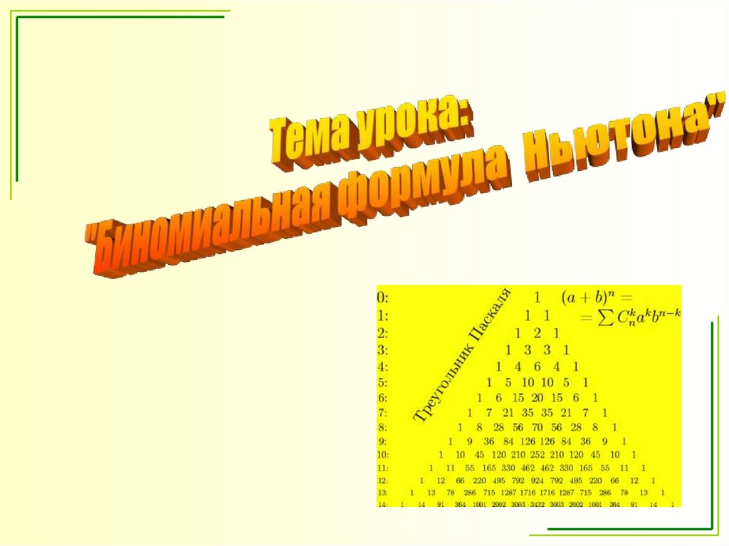 В 1664-1665 г.г. И.Ньютон установил,что формула выражающая степень