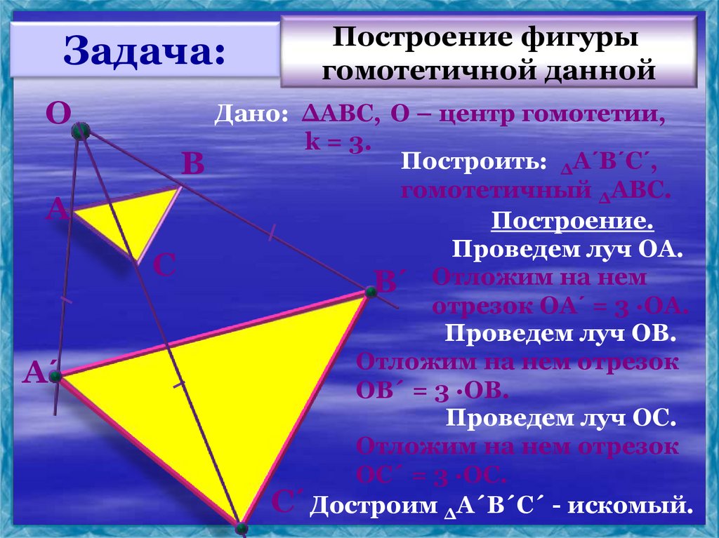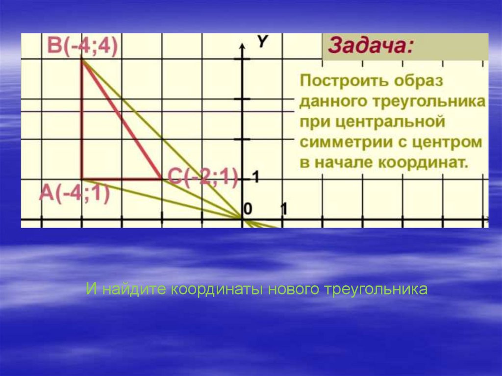 Пусть точка О – центрсимметрии. ∆АВС произвольный. Проведём луч