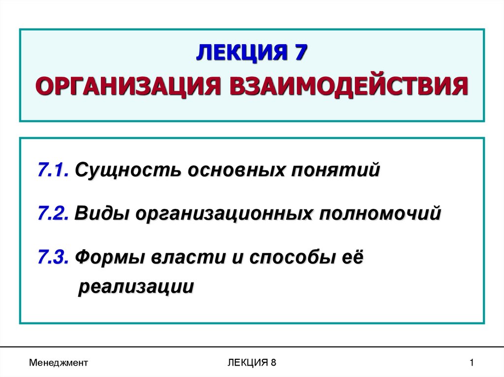 7.1. Сущность основных понятий7.2. Виды организационных полномочий