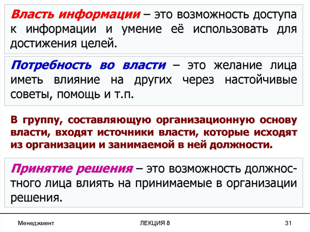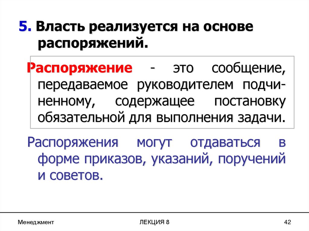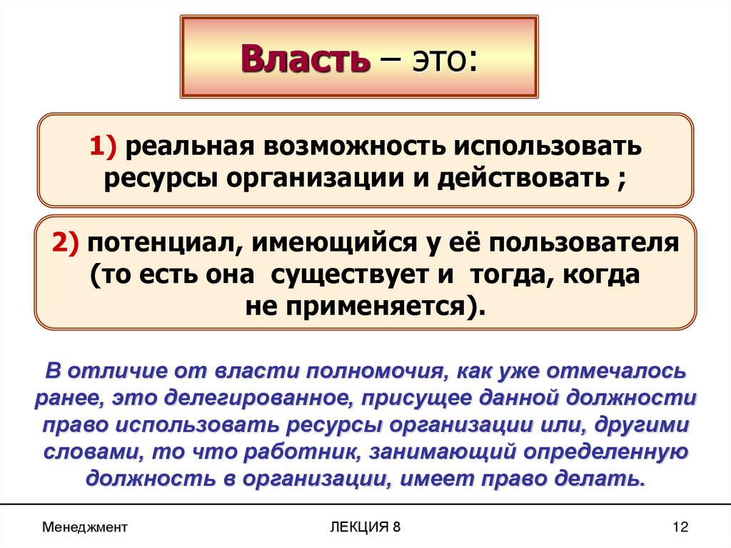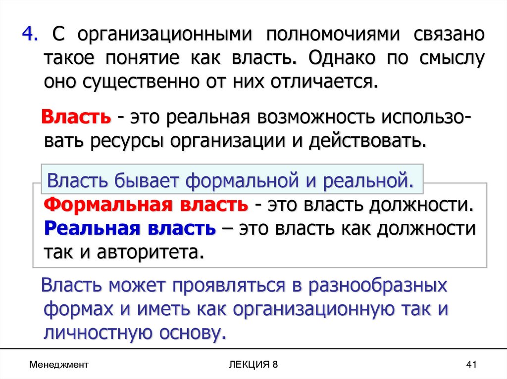 4. С организационными полномочиями связанотакое понятие как власть. Однако по смыслу
