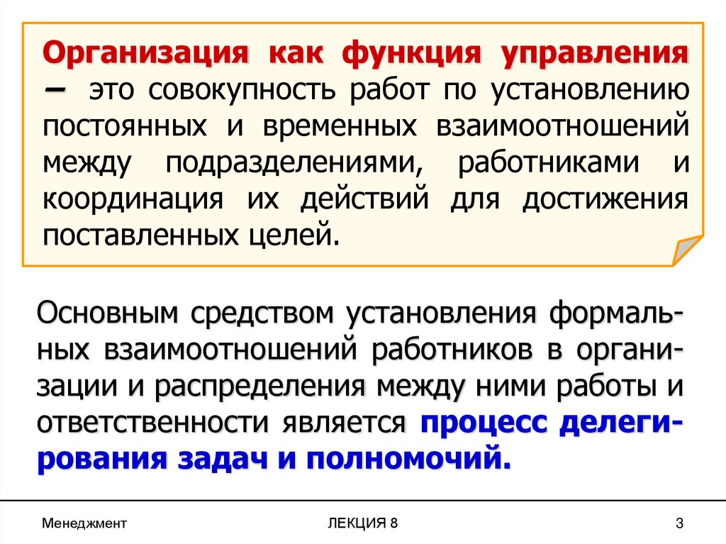 1. Установление формальных взаимоотношений работников в организации осуществляется посредствомделегирования задач и полномочий.
