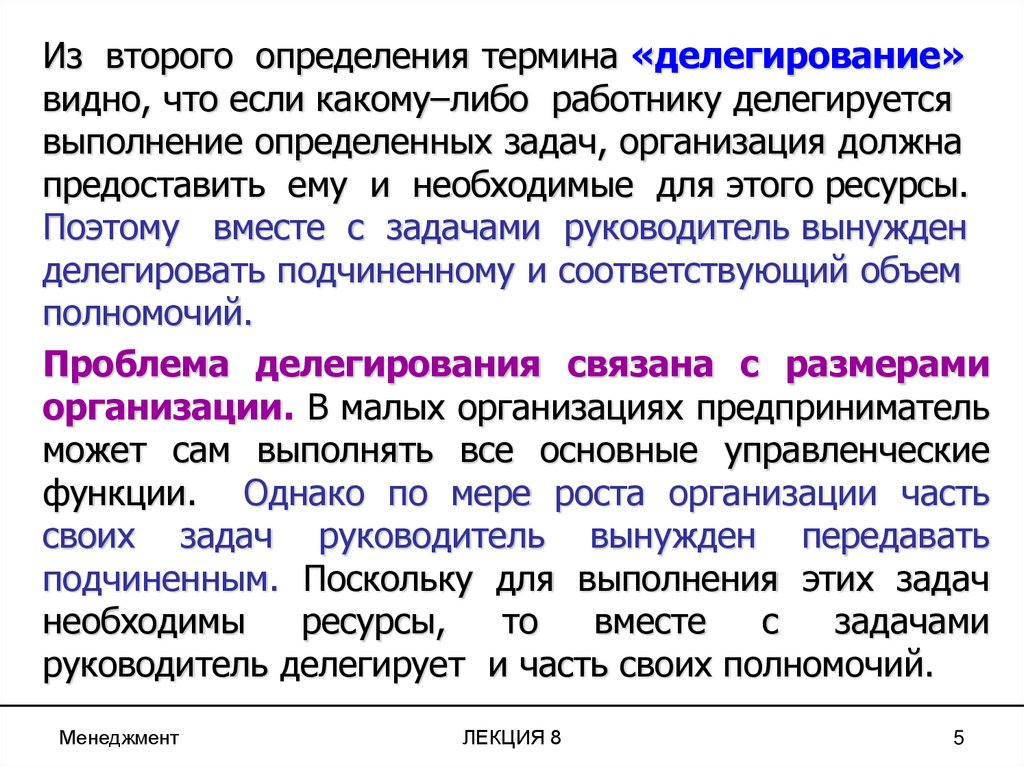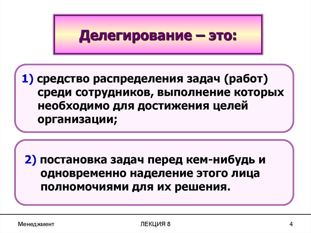 Из второго определения термина «делегирование»видно, что если какому–либо работнику делегируется