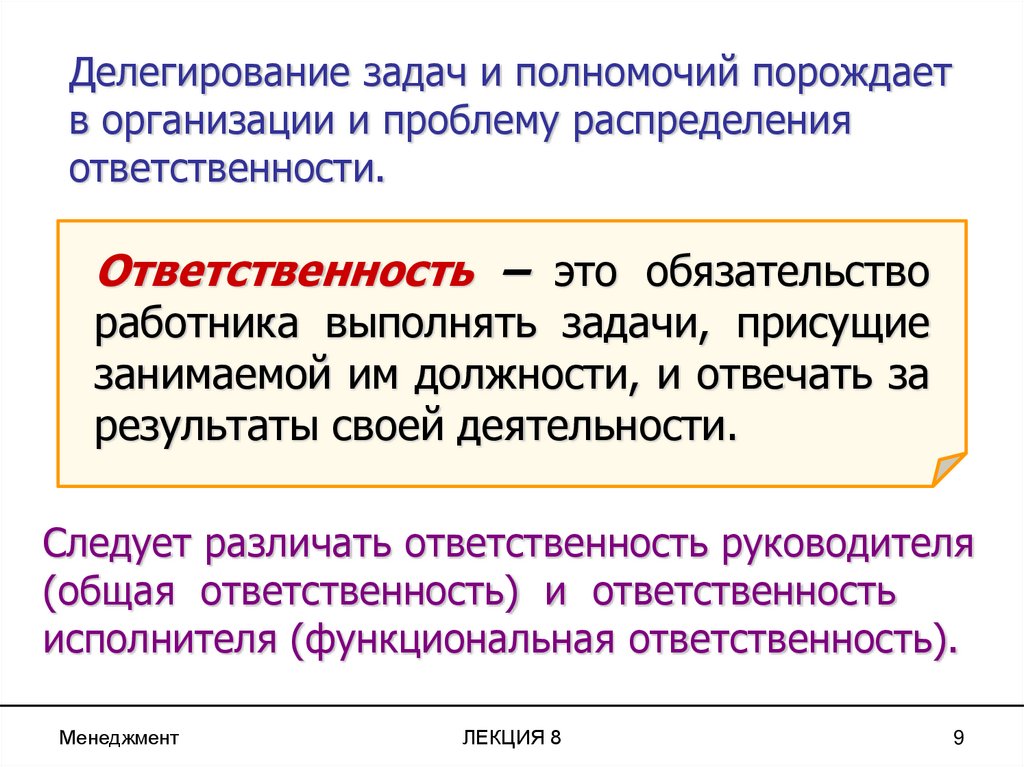 Делегирование задач и полномочий порождаетв организации и проблему распределения