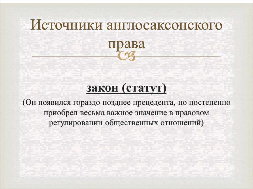 Англии. ОСНОВНОЙ ИСТОЧНИК ПРАВА – СУДЕБНЫЙ ПРЕЦЕДЕНТ