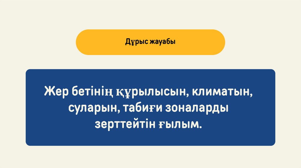 Дұрыс жауабыЖер бетінің құрылысын, климатын,