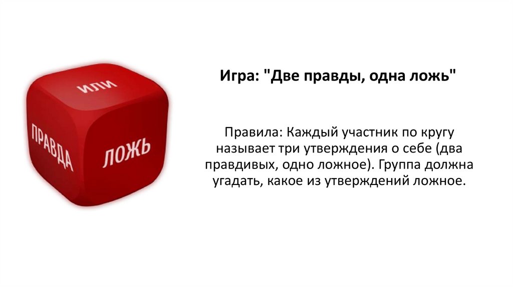 Игра: "Две правды, одна ложь"Правила: Каждый участник по кругу