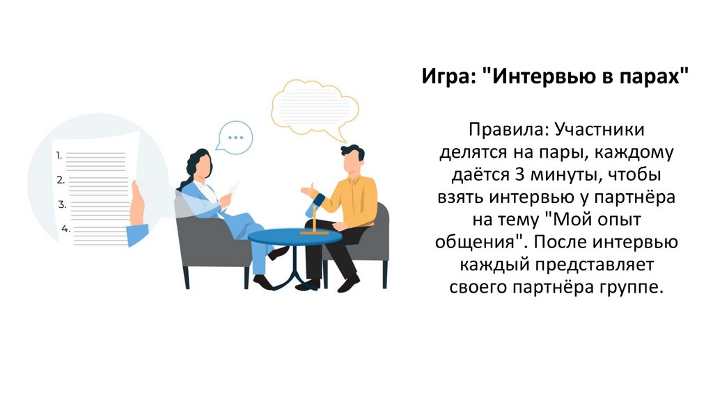 Игра: "Интервью в парах"Правила: Участники