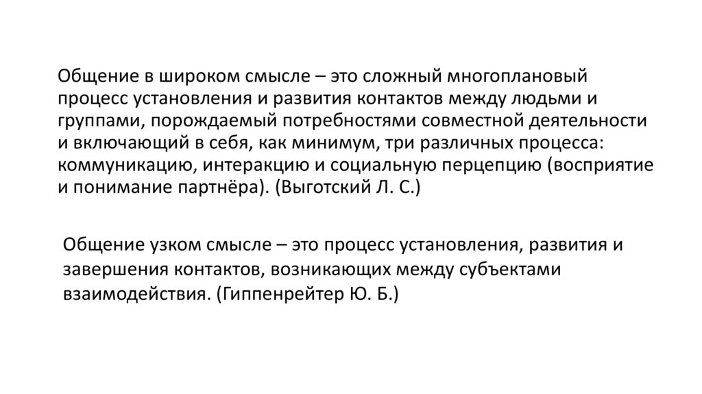 Общение узком смысле – это процесс установления, развития и