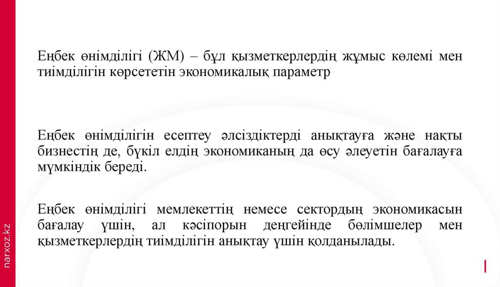 Еңбек өнімділігі (ЖМ) – бұл қызметкерлердің жұмыс көлемі ментиімділігін көрсететін экономикалық параметр.