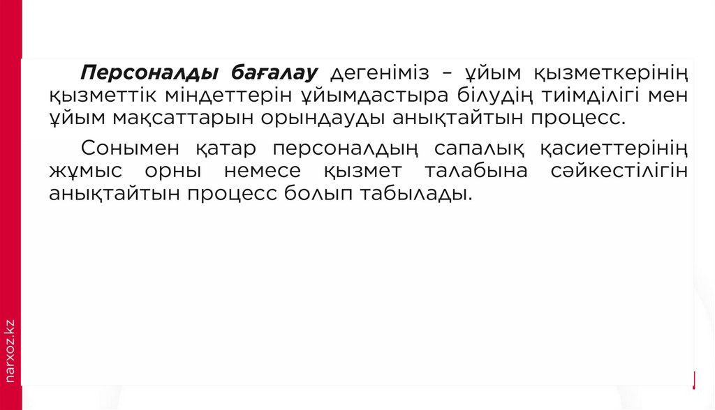 Персоналды бағалау дегеніміз – ұйым қызметкерініңқызметтік міндеттерін ұйымдастыра білудің тиімділігі мен