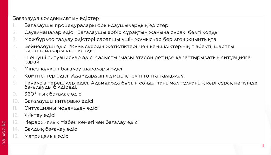 5. Персонал дағдылары мен құзыреттілігін бағалау әдістері