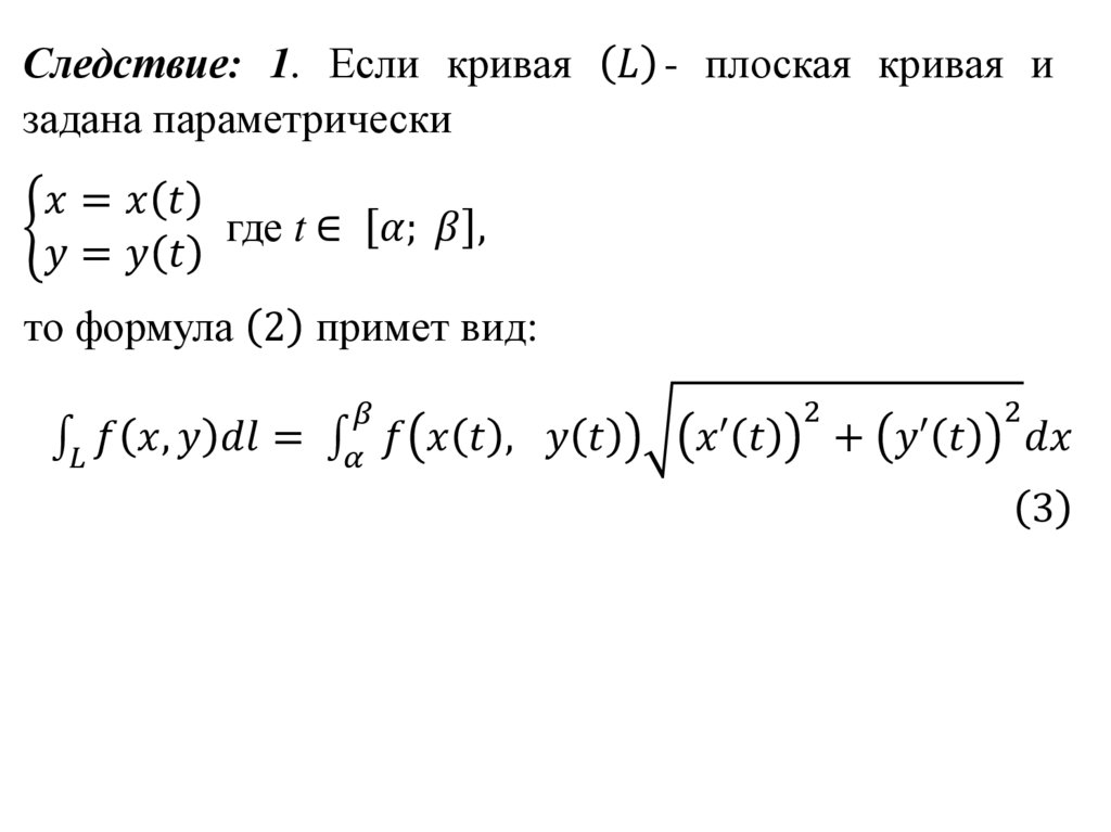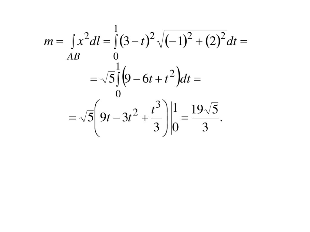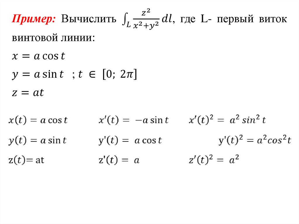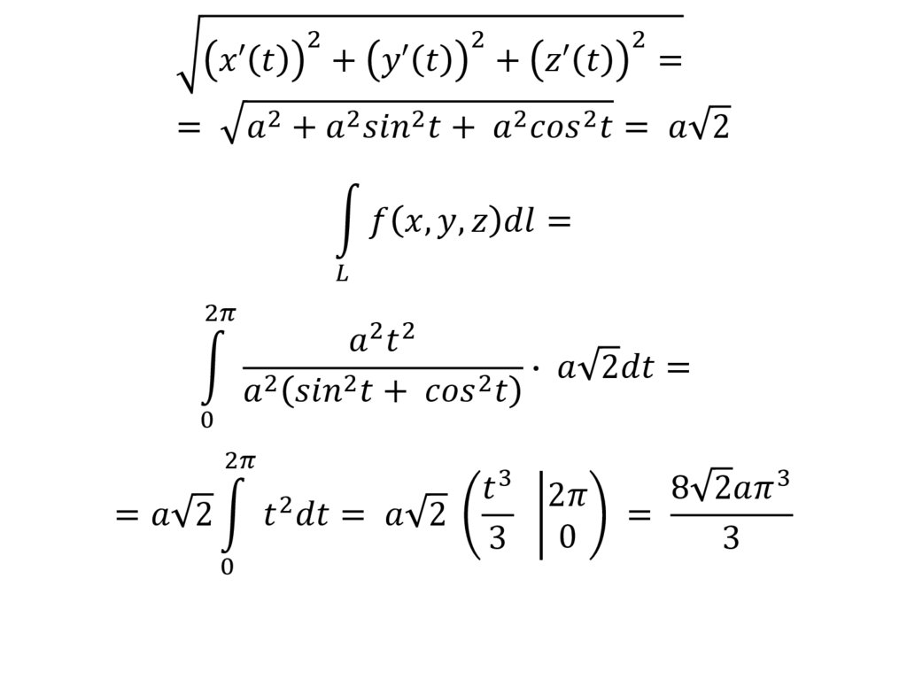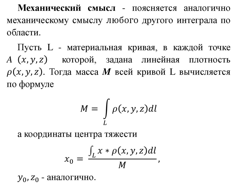 Пусть функция f x, y, z определена вкаждой точке гладкой кривой l . Разобьём