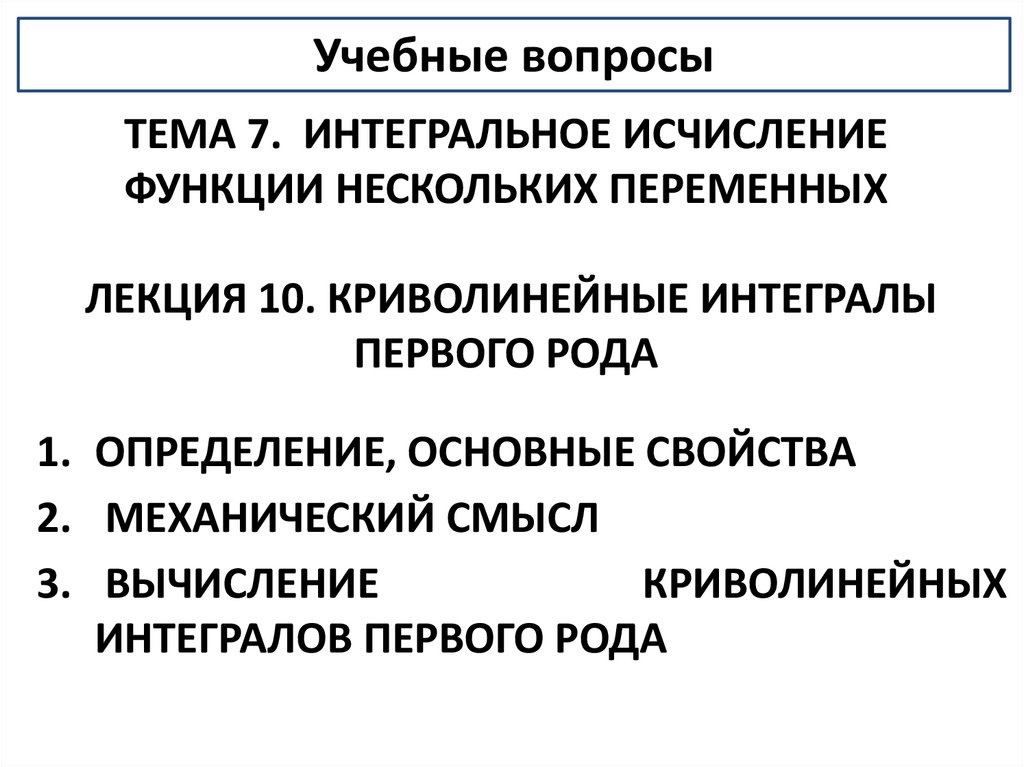 Учебные вопросыТЕМА 7. ИНТЕГРАЛЬНОЕ ИСЧИСЛЕНИЕ