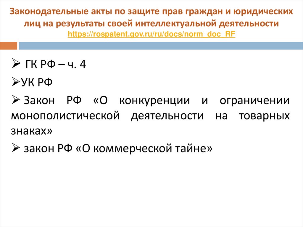Законодательные акты по защите прав граждан и юридическихлиц на результаты своей интеллектуальной деятельности