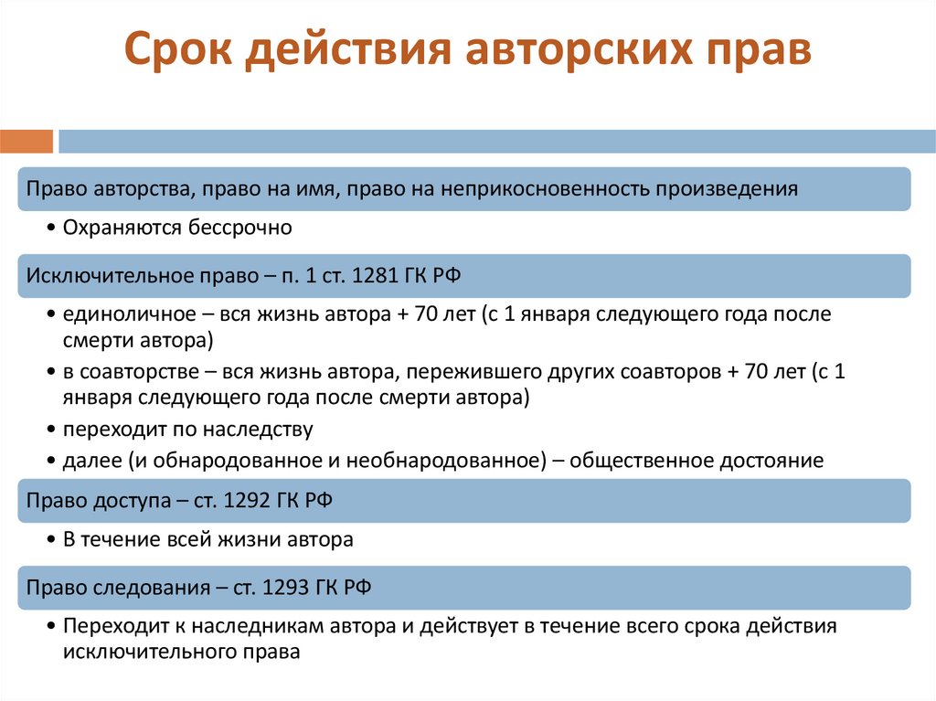 • Включают право на авторство, имя (ст. 1228 ГК РФ), право на