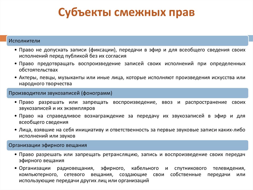 права доступа (ст. 1292 ГК РФ), права на отзыв (ст. 1269 ГК РФ)