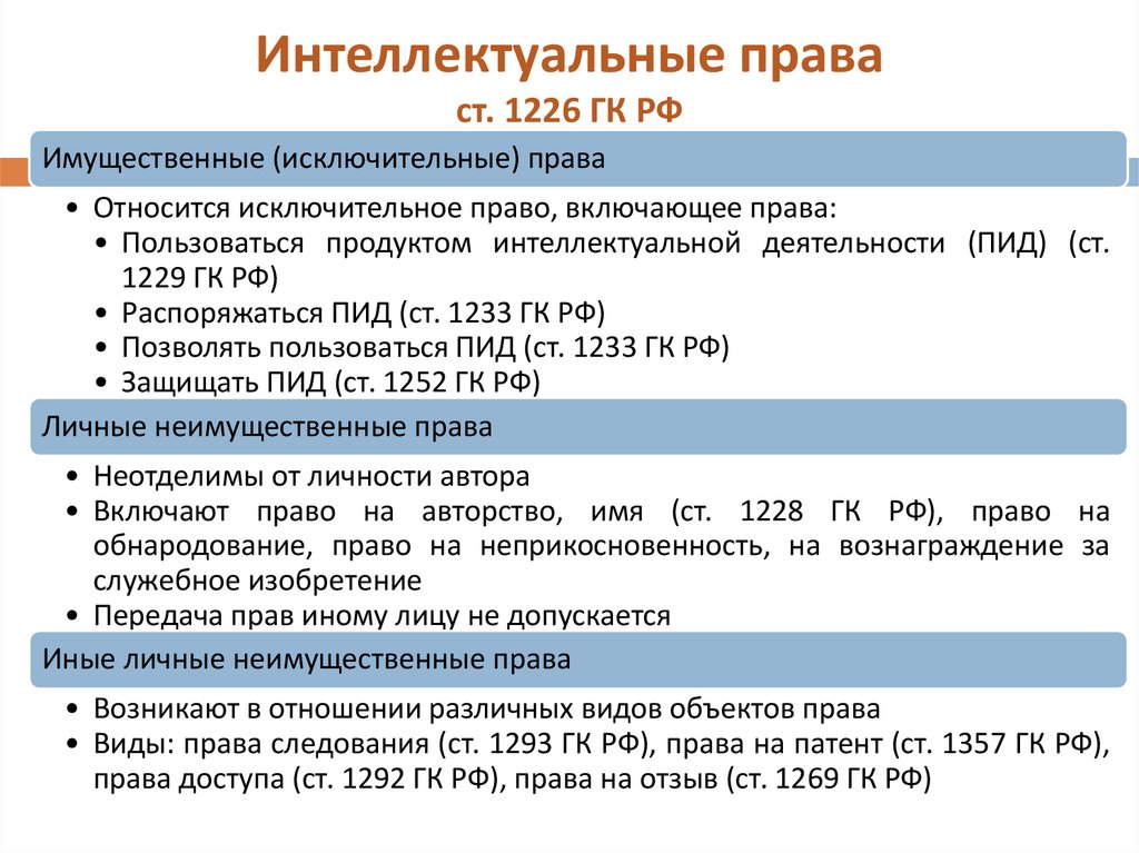 • Пользоваться продуктом интеллектуальной деятельности (ПИД) (ст.