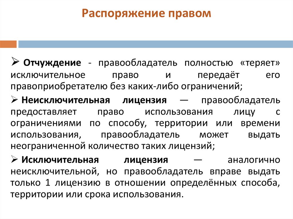 Распоряжение правомОтчуждение - правообладатель полностью «теряет»