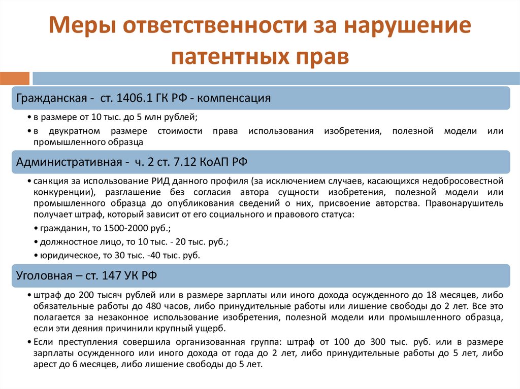 полагается за незаконное использование изобретения, полезной модели или промышленного образца,