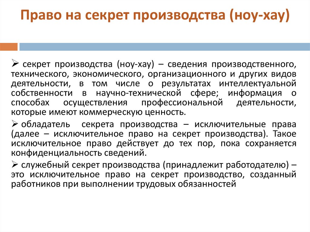Право на секрет производства (ноу-хау)секрет производства (ноу-хау) – сведения производственного,