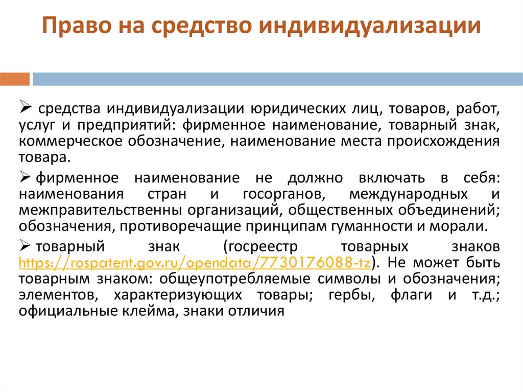 Право на средство индивидуализациисредства индивидуализации юридических лиц, товаров, работ,
