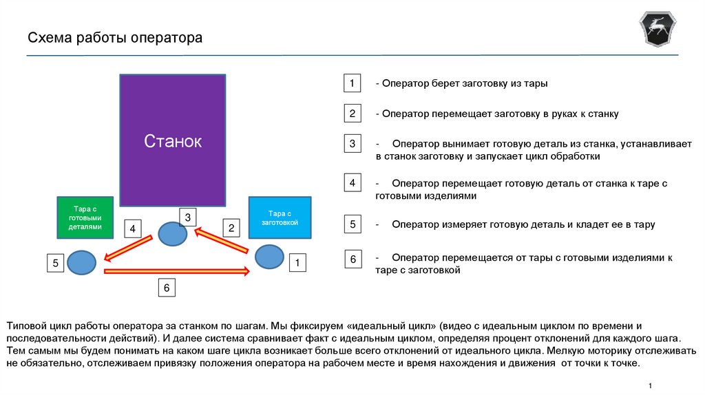 Типовой цикл работы оператора за станком по шагам. Мы фиксируем «идеальный цикл» (видео с идеальным циклом по времени и