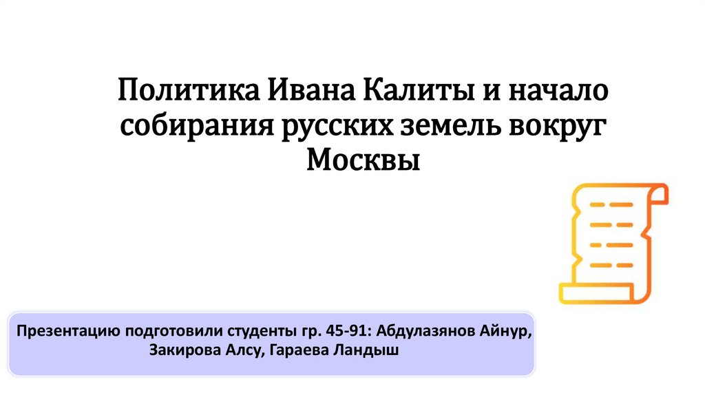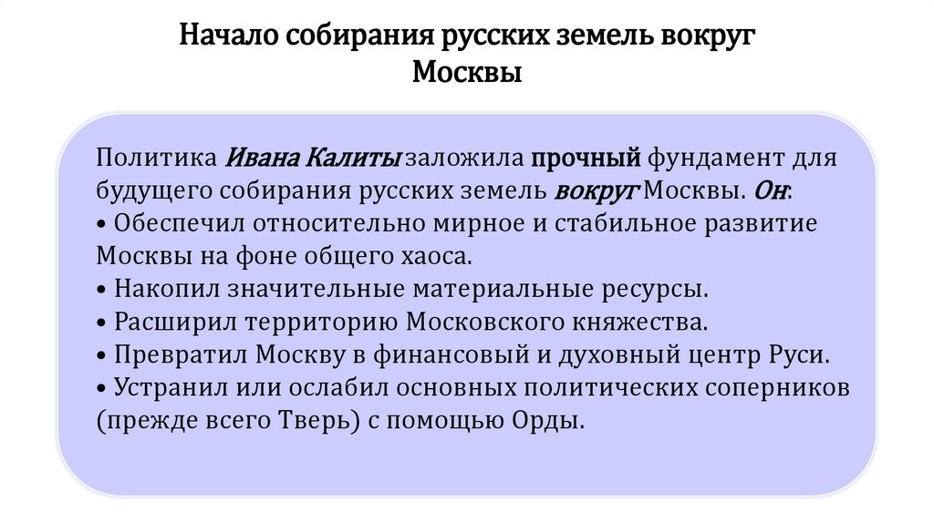 1. Политика Ивана Калиты и начало собирания русских земель вокруг Москвы
