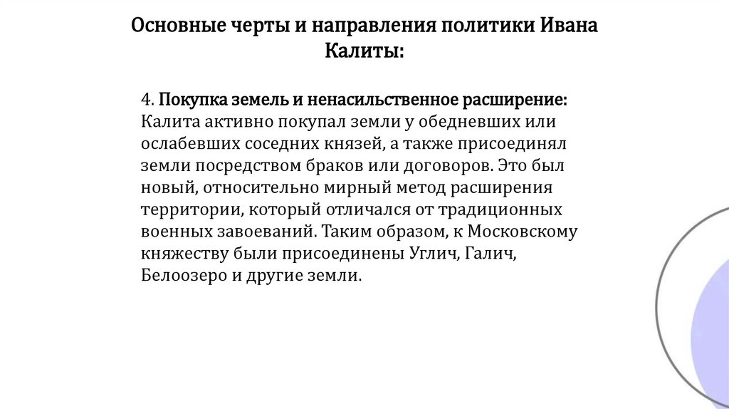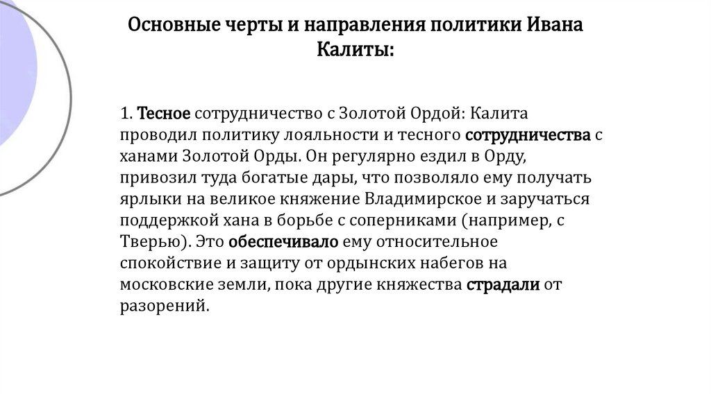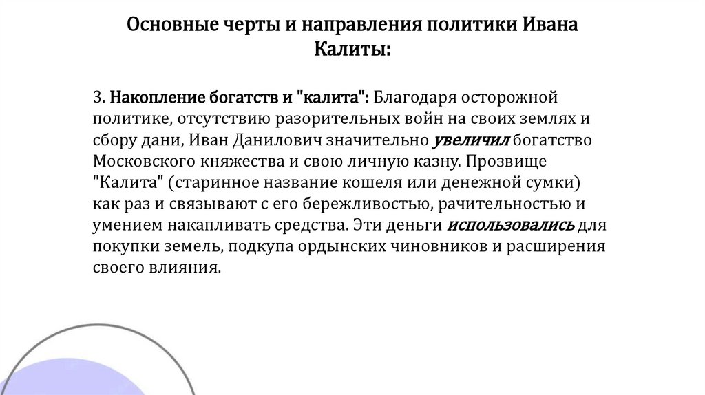 Основные черты и направления политики ИванаКалиты: