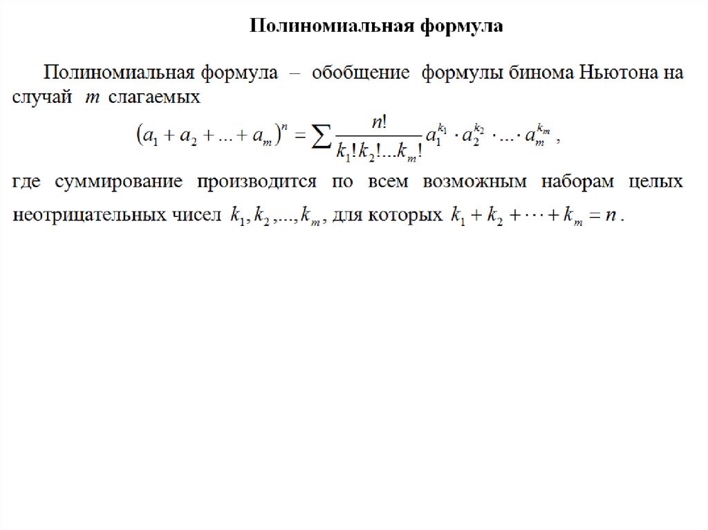 1. Общие правила комбинаторики2. Схема выбора без возвращений
