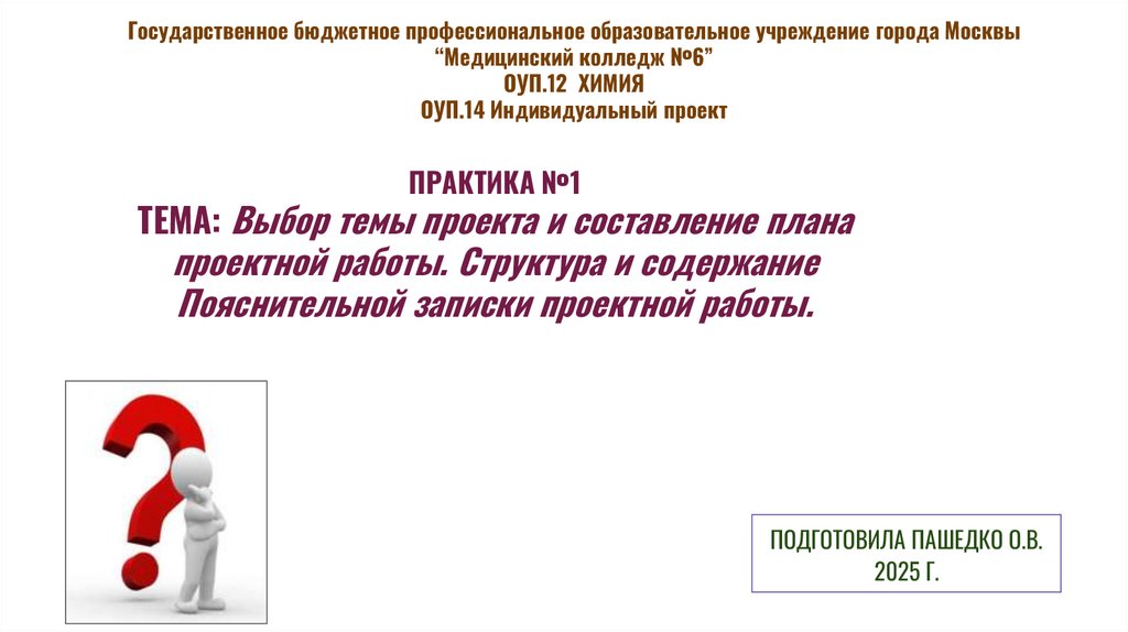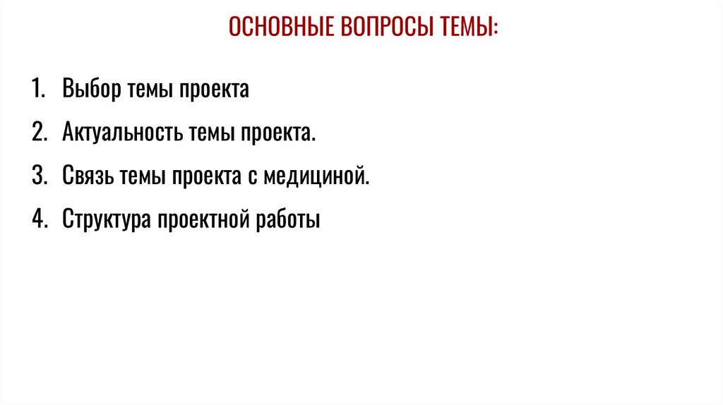 ОСНОВНЫЕ ВОПРОСЫ ТЕМЫ:1. Выбор темы проекта