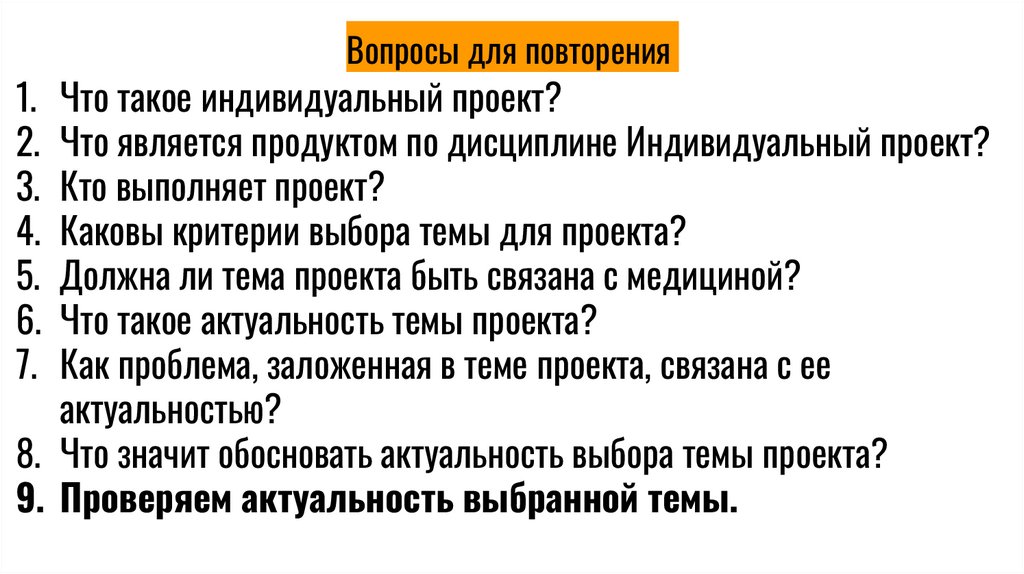 Вопросы для повторения1. Что такое индивидуальный проект?
