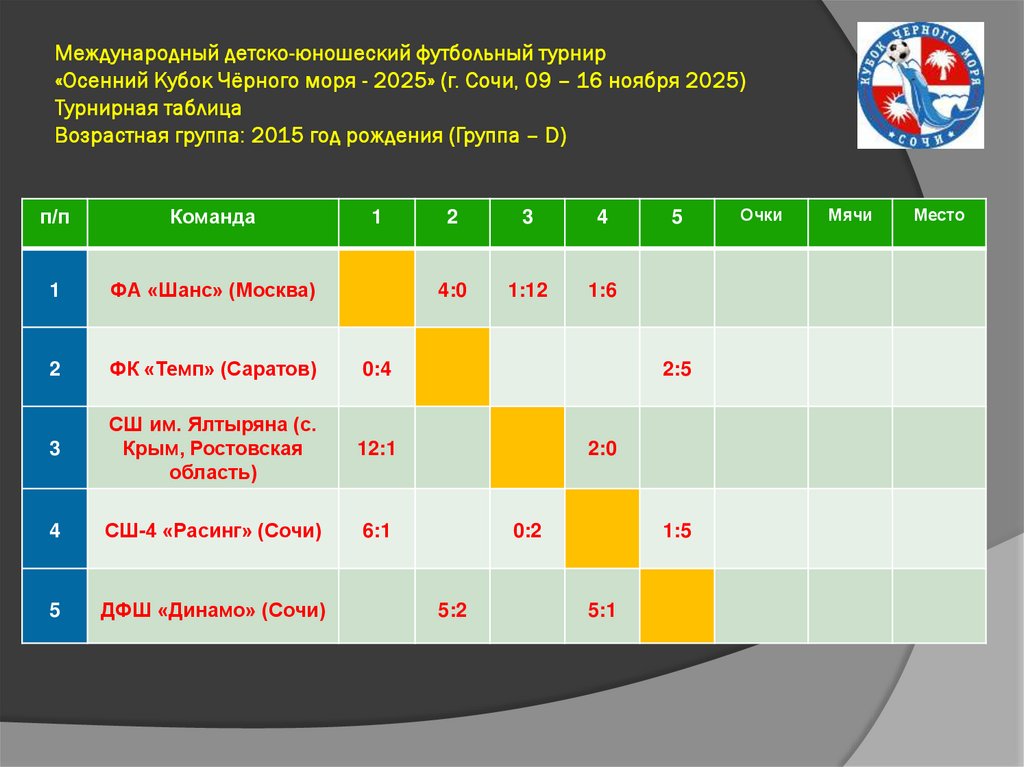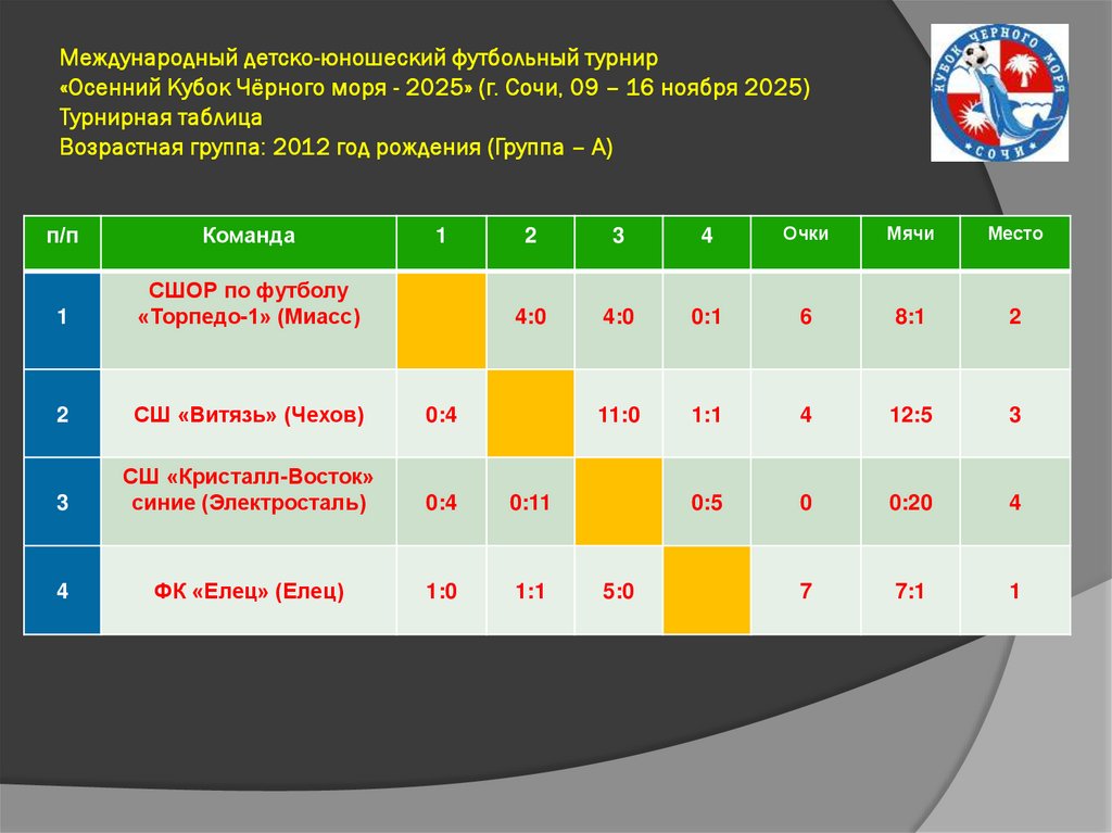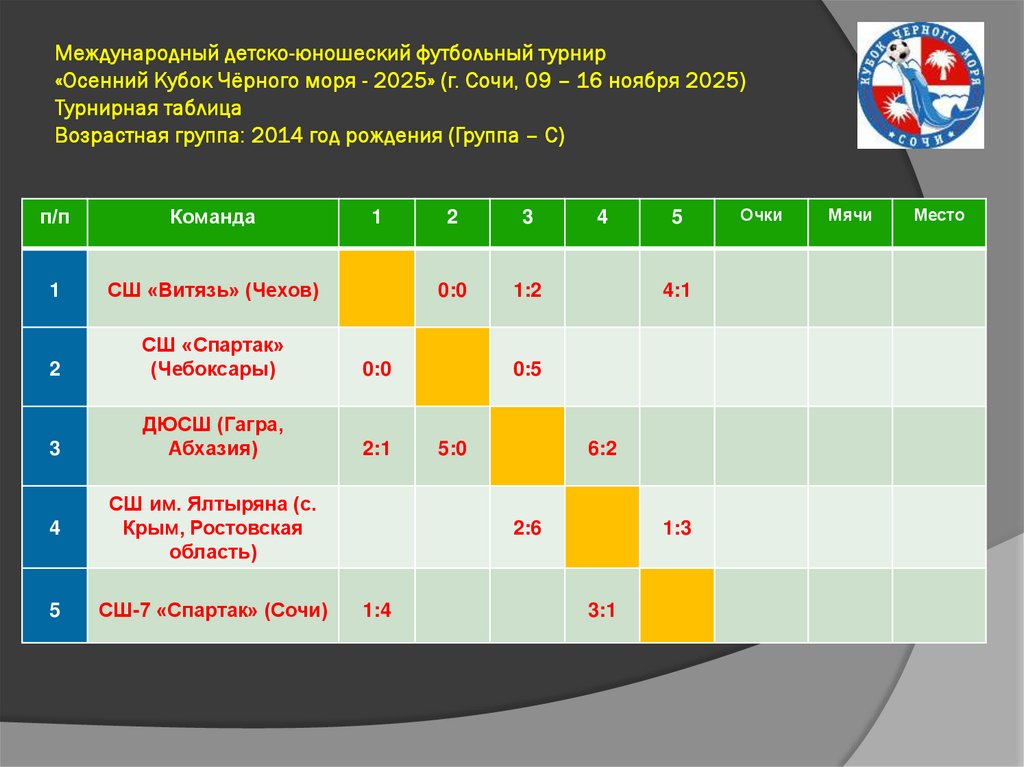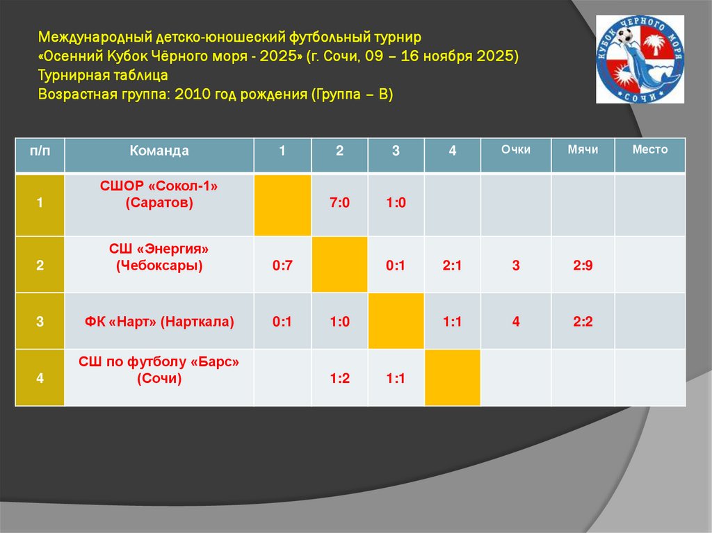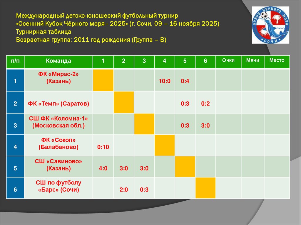 Международный детско-юношеский футбольный турнир«Осенний Кубок Чёрного моря - 2025» (г. Сочи, 09 – 16 ноября 2025)