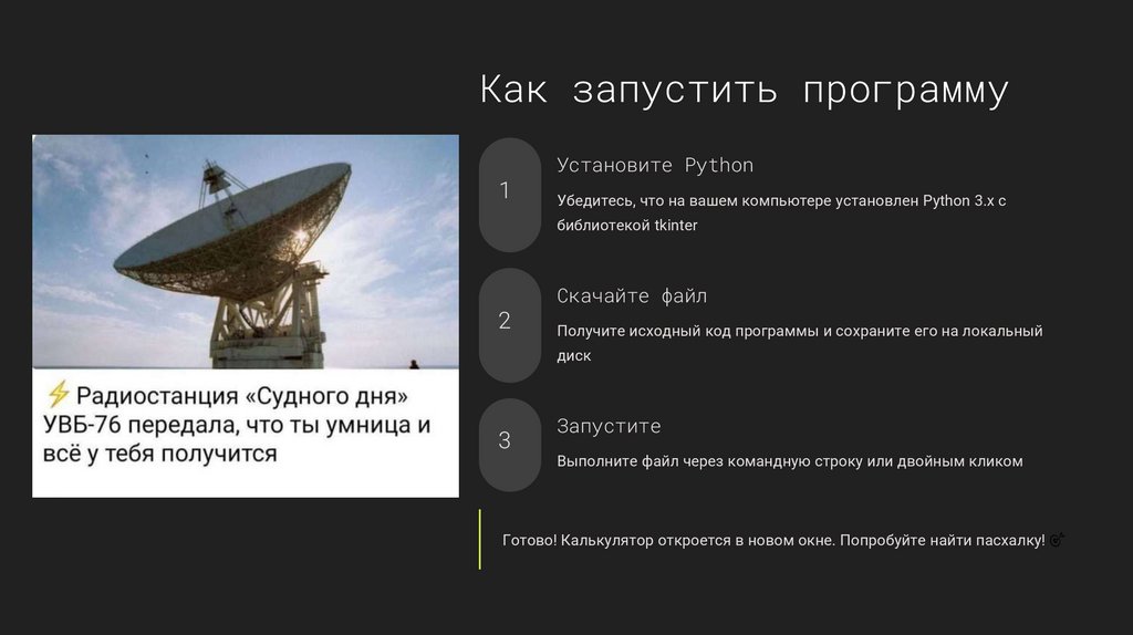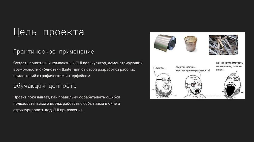 Создать понятный и компактный GUI-калькулятор, демонстрирующий
