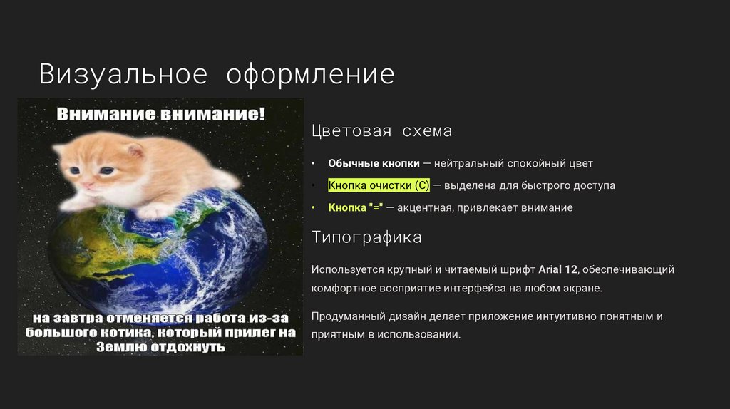 Элементы размещены в таблице 4×4, где кнопка "=" занимает всю нижнюю строку для удобства