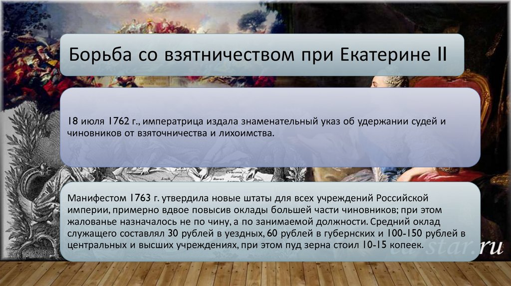 Борьба со взятничеством при Екатерине II18 июля 1762 г., императрица издала знаменательный указ об удержании судей и