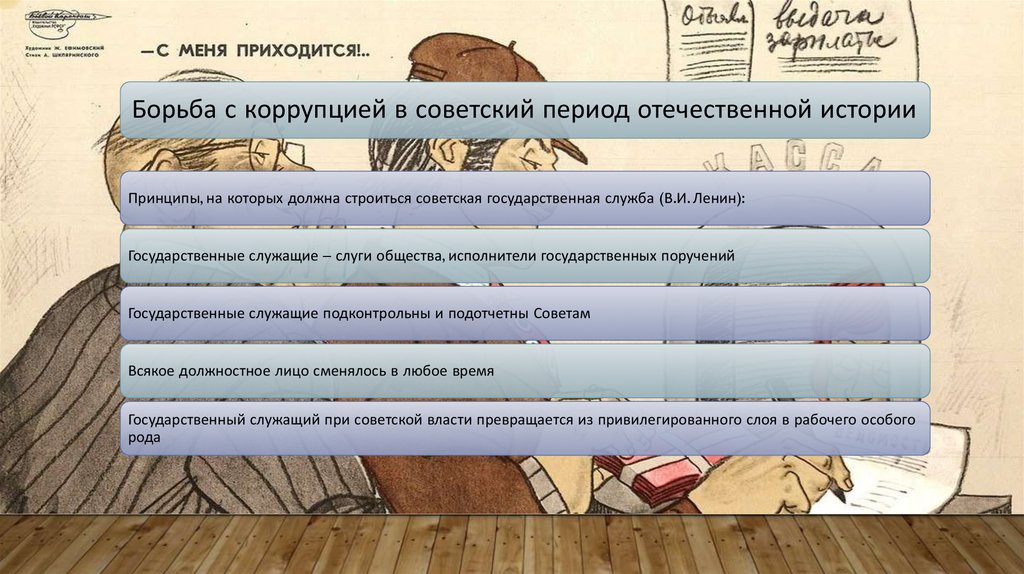 Борьба с коррупцией в советский период отечественной историиПринципы, на которых должна строиться советская государственная служба (В.И. Ленин):