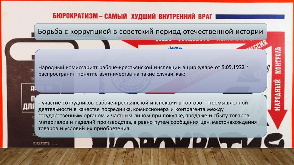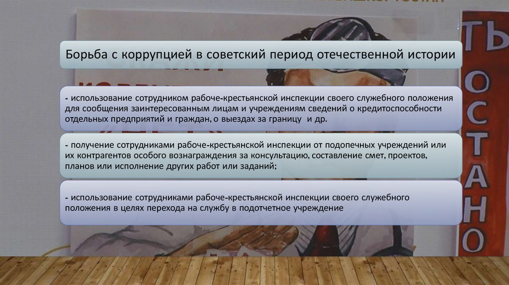 Борьба с коррупцией в советский период отечественной истории- использование сотрудником рабоче-крестьянской инспекции своего служебного положения