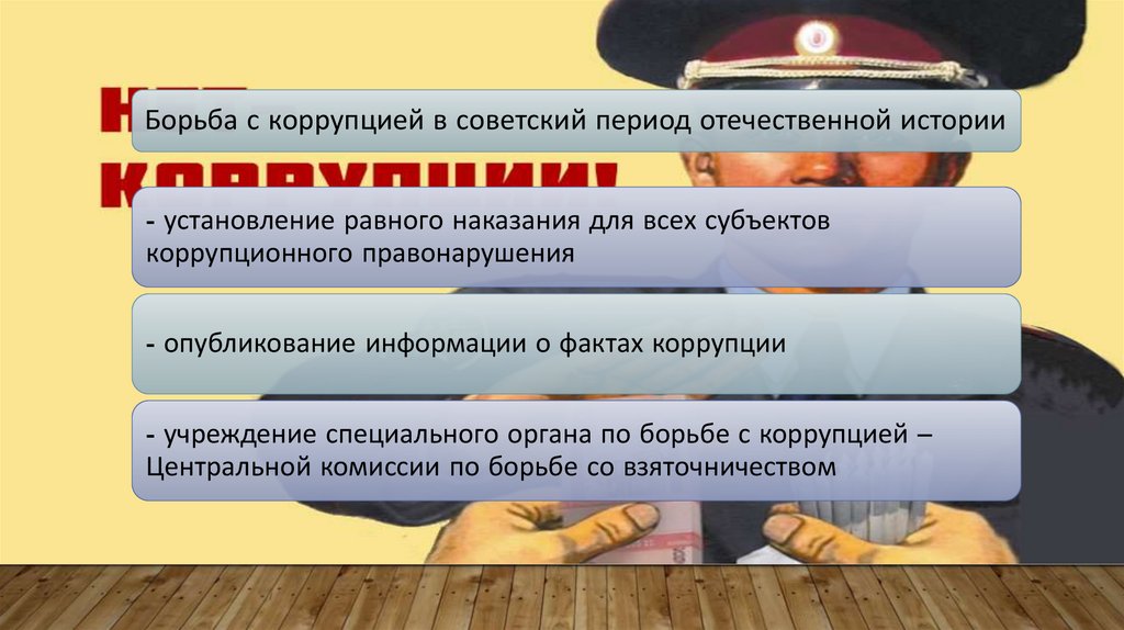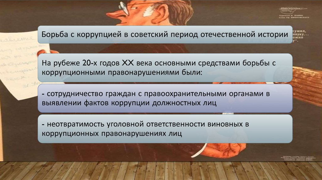 Борьба с коррупцией в советский период отечественной историиНа рубеже 20-х годов XX века основными средствами борьбы с