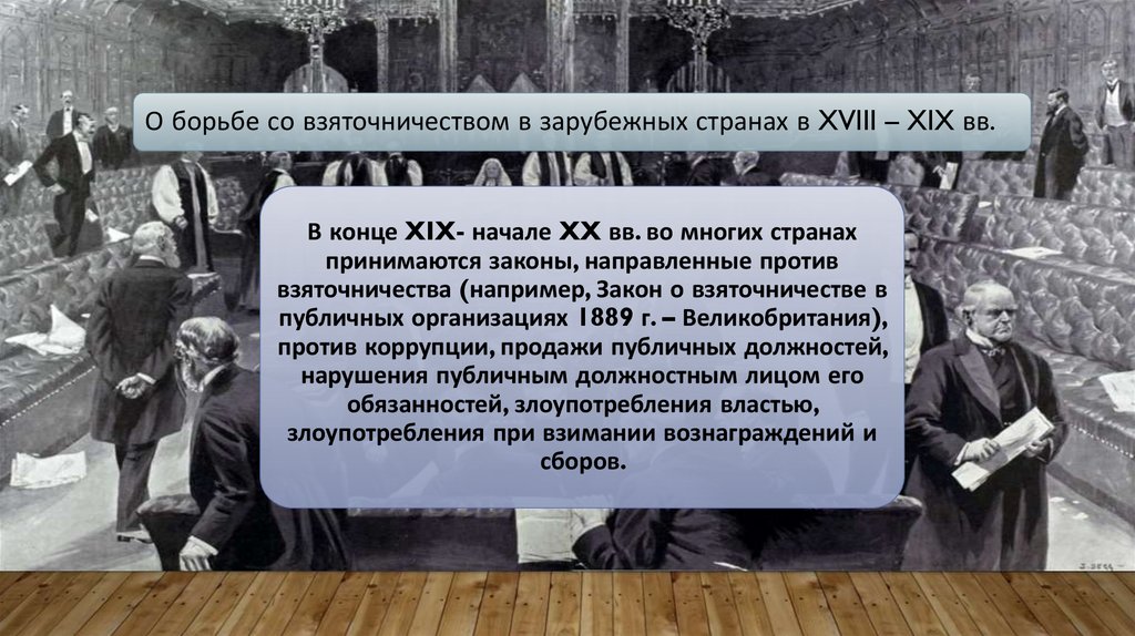 О борьбе со взяточничеством в зарубежных странах в XVIII – XIX вв.В конце XIX- начале XX вв. во многих странах
