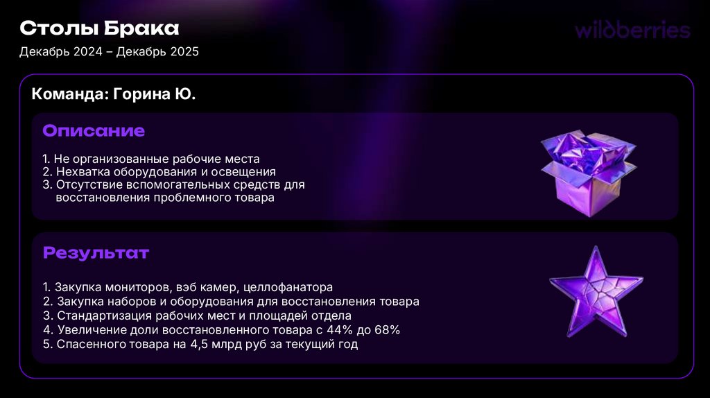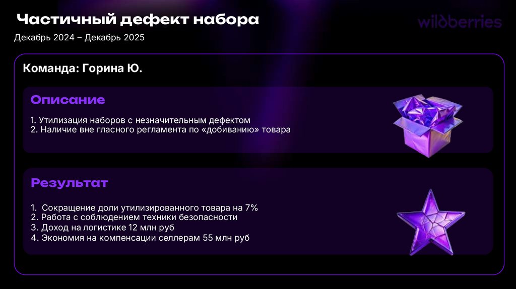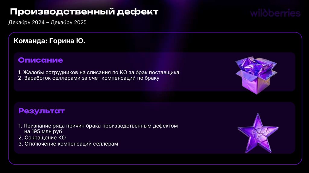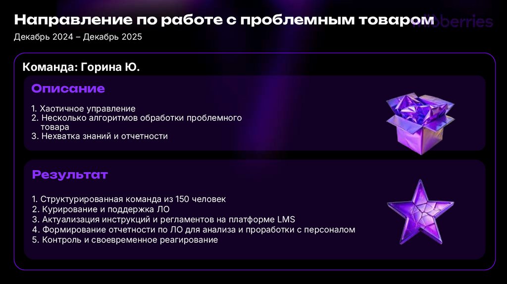 Направление по работе с проблемным товаромДекабрь 2024 – Декабрь 2025