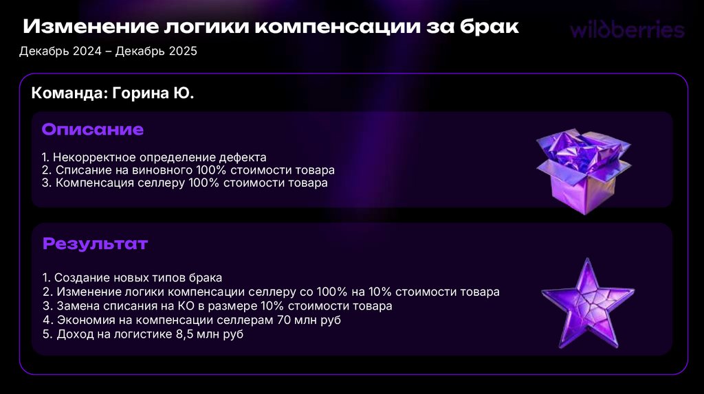 Изменение логики компенсации за бракДекабрь 2024 – Декабрь 2025