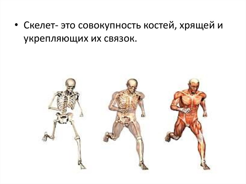 • Скелет- это совокупность костей, хрящей иукрепляющих их связок.