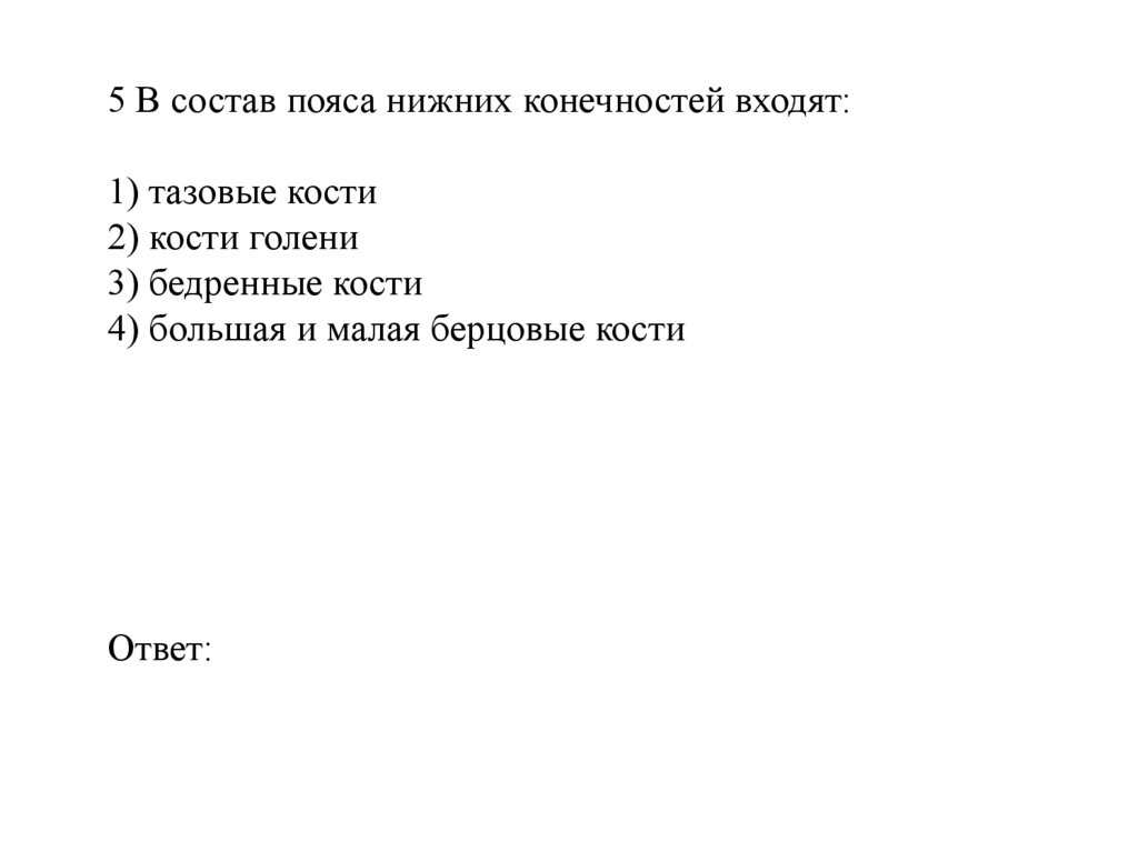 42. 20 Какой отдел позвоночника образует соединение с костями таза? 1) крестцовый 2) грудной 3) шейный 4) поясничный Ответ: