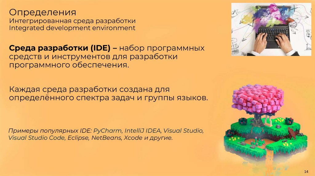 Примеры популярных IDE: PyCharm, IntelliJ IDEA, Visual Studio,