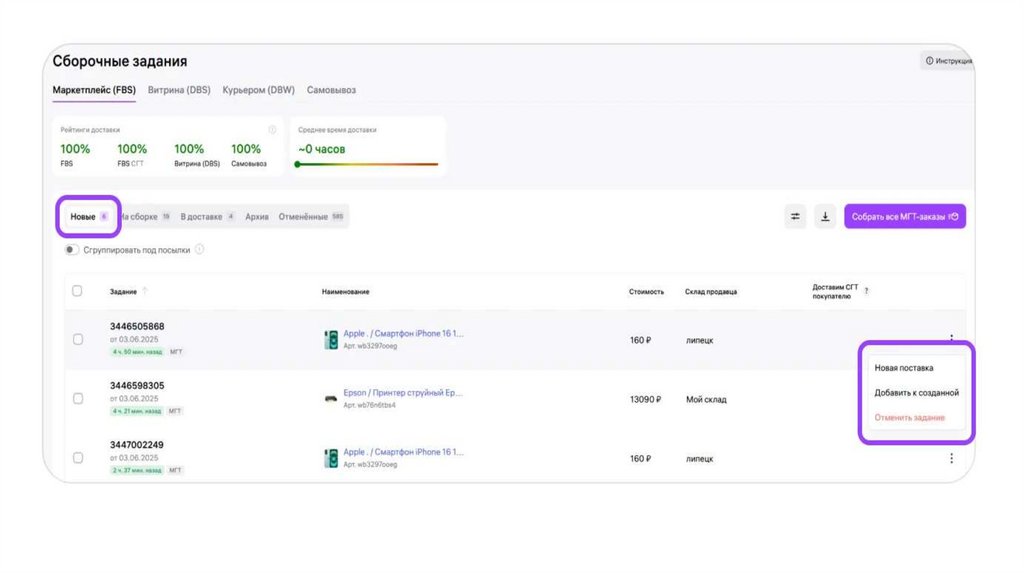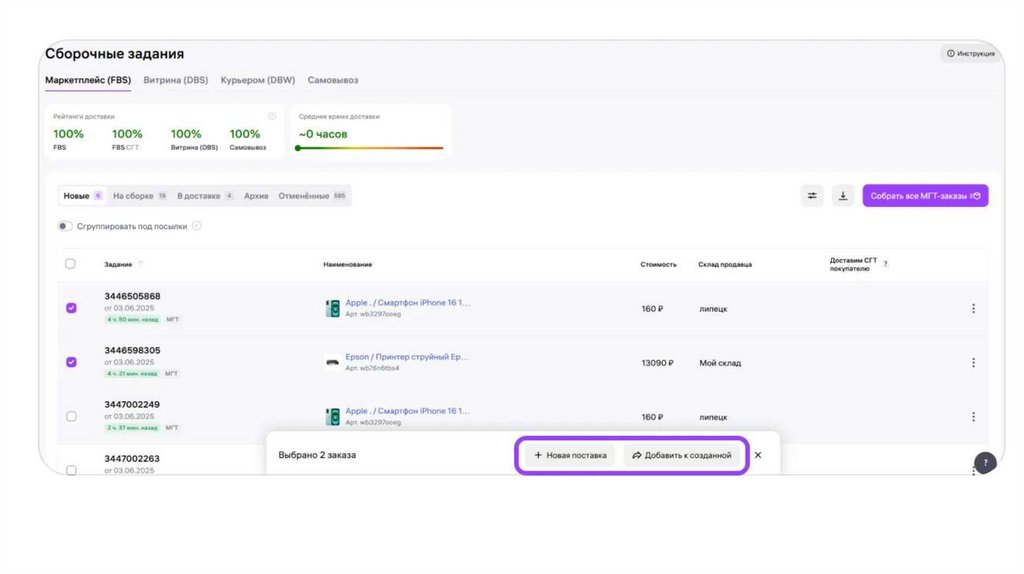 3.Собрать задания в поставку, поставку можно