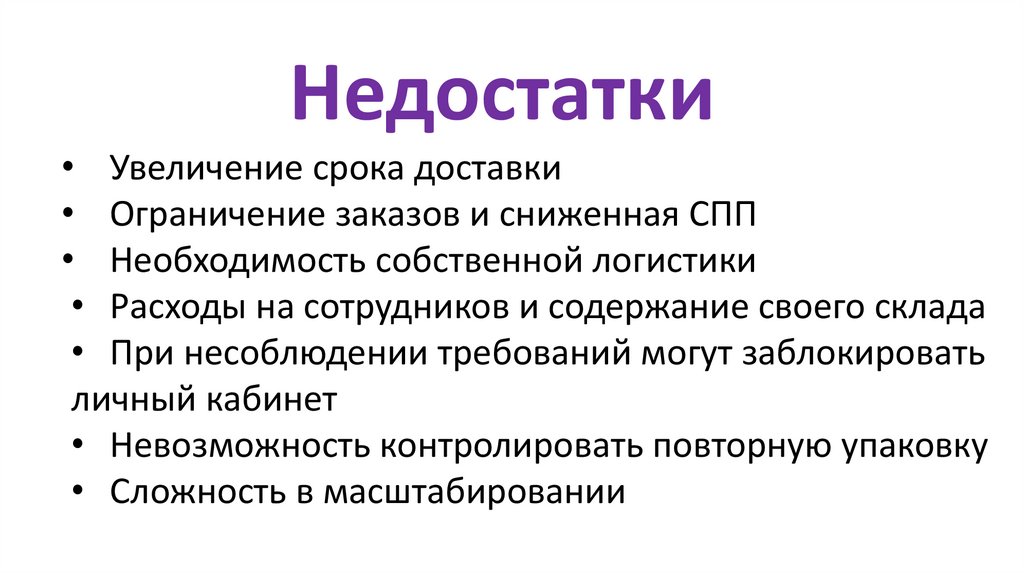 Недостатки• Увеличение срока доставки