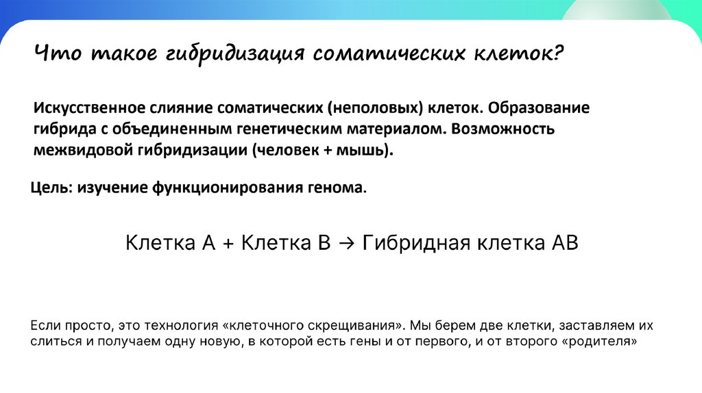 Если просто, это технология «клеточного скрещивания». Мы берем две клетки, заставляем их