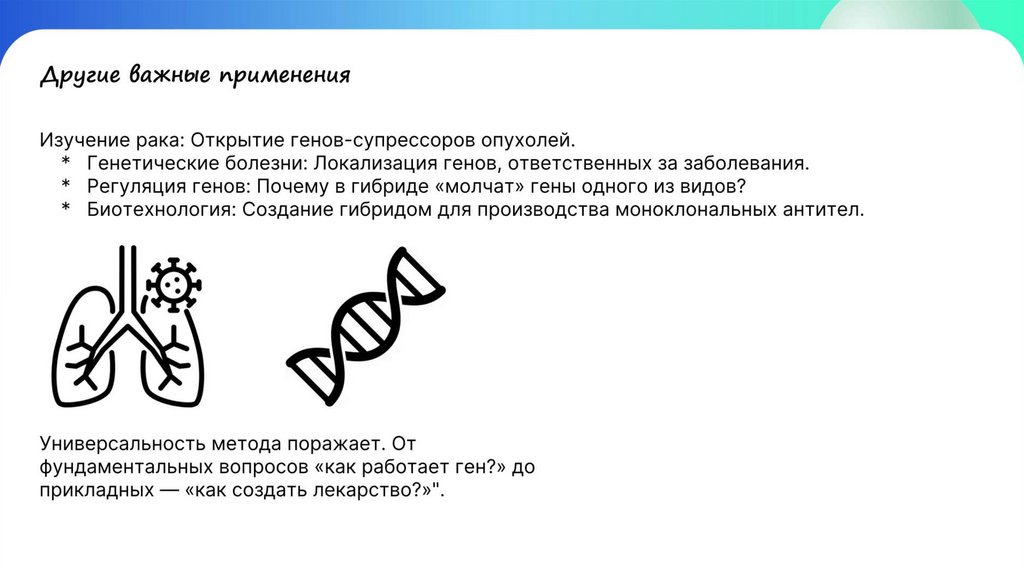 Другие важные примененияИзучение рака: Открытие генов-супрессоров опухолей.