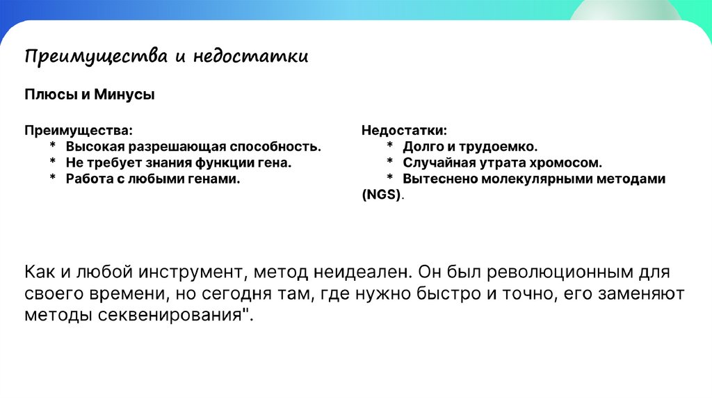 Как и любой инструмент, метод неидеален. Он был революционным для