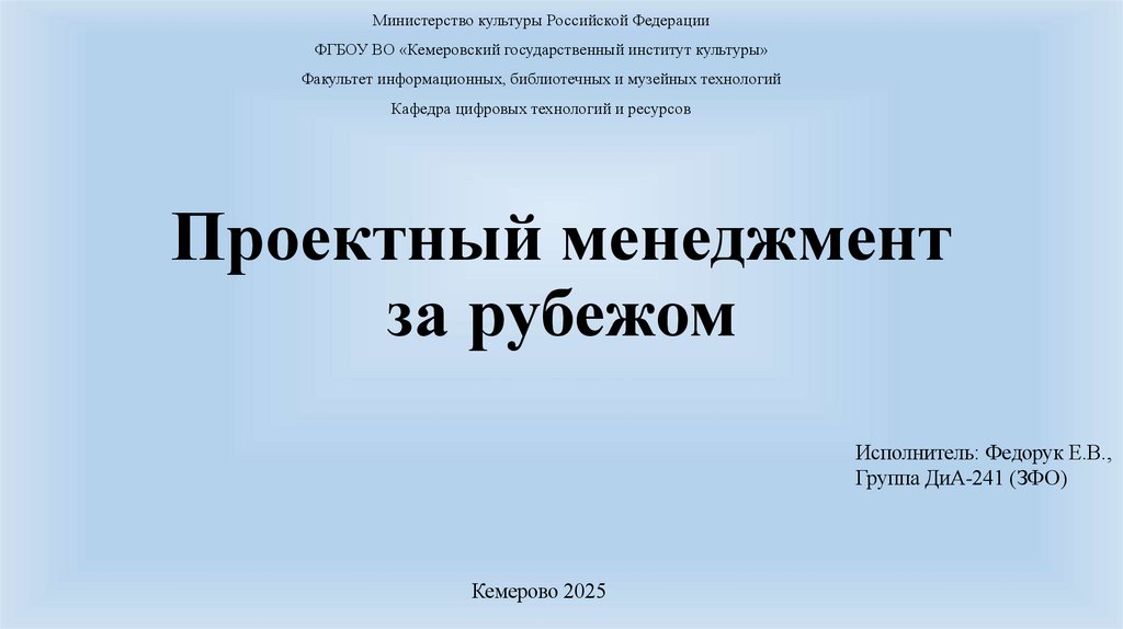 Министерство культуры Российской ФедерацииФГБОУ ВО «Кемеровский государственный институт культуры»